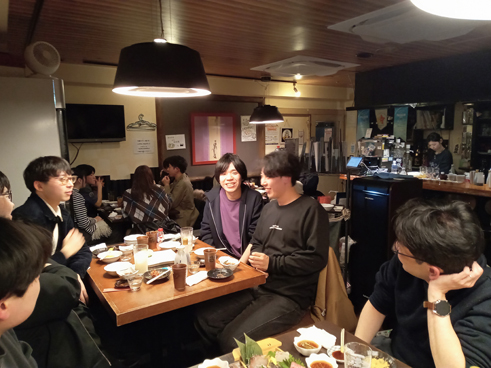 12月 公聴会の後、慰労会兼忘年会を行いました。学外副査をご担当頂きました東工大川井清彦先生もご参加下さいました。卒業生、在学生が交流し、大いに盛り上がりました!公聴会および宴会にご参加頂いた全ての皆様に感謝いたします。また、たくさんのお土産を有難うございました!