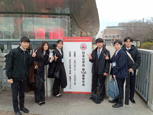 3月 日本大学船橋キャンパスで開催された学会(日本化学会春季年会)に、西原先生、9名の大学院生、8名の学部4年生が参加し、成果を発表しました。たくさんのご質問を頂き、有難うございました!